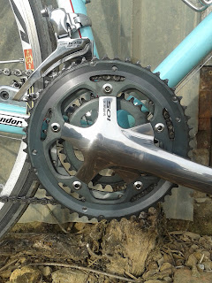 I've also played about with the bars a bit. After a brief flirtation with some old Big Piegas, I've been using Deda's RHM02 bars. The jury's a bit out on these: the drop and curve are very comfortable, the forward bend (in the photo on the right) less so. A shallower radius would be more comfortable; this bend is so square it forces my hands further out than I'd like, making the bars feel wider than others of a similar size. On balance, I find the old FSA compacts, which were slightly narrower at the top than the drops, preferable.